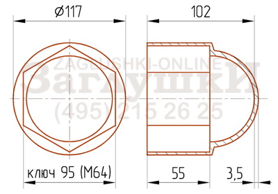Колпачок под болт/гайку М64 или размер ключа 95 мм. В основном используется для того, чтобы закрыть крепёж во фланце. Надевается на болт/гайку для защиты от внешних повреждений и попадания влаги, провоцирующей коррозию. Изделие отлито из высокопрочного пластика, благодаря чему колпачок считается надёжной защитой, подходящей для эксплуатации в различных условиях, в том числе при резких перепадах температуры.