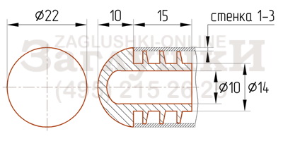 Пластиковая внутренняя заглушка для металлических и хромированных труб диаметром 22 мм. Имеет рёберную конструкцию заходящей части и подходит для труб с толщиной стенки 1-3 мм. Отличается сферической шляпкой и часто используется в качестве опоры для труб, находящихся под углом относительно пола. В основном применяется для стульев на металлическом каркасе.