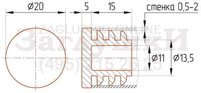 Пластиковая заглушка для круглых труб диаметром 20 мм. Подходит для труб с толщиной стенки 0.5-2.0 мм. Вставляется в торец трубы и забивается киянкой. Отлично держится, защищая от попадания внутрь трубы пыли и влаги. Аккуратно и эстетично смотрится в металлоконструкции. Заглушка рекомендуется для комплектации с хромированными трубами.