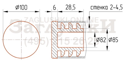 Пластиковая внутренняя заглушка для металлических и хромированных труб с внешним диаметром сечения 100 мм. Подходит для труб со стенкой 2-4,5 мм. Благодаря толстой шляпке — 6 мм, заглушка отличается износостойкостью, что позволяет использовать её в защитных и транспортировочных целях. Монтаж изделия прост: заглушка вставляется в торец трубы и забивается киянкой. Для надёжного крепления внутри трубы предусмотрены три ряда боковых рёбер.