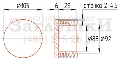 Внутренняя заглушка для металлических и хромированных труб диаметром 105 мм. Подходит для труб со стенкой 2-4,5 мм. Монтируется с помощью киянки и отлично держится в торце трубы за счёт пяти рядов рёбер на заходящей части изделия. Эстетично и аккуратно смотрится в металлоконструкции.