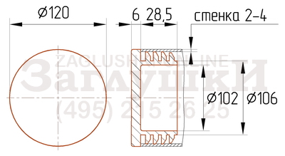 Пластиковая заглушка для металлических и хромированных труб с внешним диаметром сечения 120 мм. Подходит для труб со стенкой 2-4 мм. Может использоваться в транспортировочных, декоративных и защитных целях. Монтируется с помощью киянки. Имеет три ряда боковых рёбер, за счёт которых отлично держится, защищая от попадания внутрь трубы пыли и влаги.