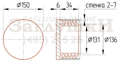 Внутренняя заглушка для круглых труб с наружным диаметром сечения 150 мм. Подходит для труб со стенкой 2-7 мм. Используется в декоративных, защитных и транспортировочных целях. Изделие монтируется с помощью киянки и отлично держится благодаря боковым рёбрам на заходящей части. Заглушка отличается эстетичной поверхностью шляпки без стыков и аккуратно смотрится в металлоконструкции.