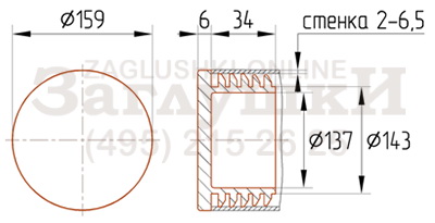 Внутренняя пластиковая заглушка для металлических и хромированных труб диаметром 159 мм. Подходит для труб со стенкой 2-6,5 мм. Вставляется в торец трубы и забивается киянкой. Заглушка имеет боковые рёбра на заходящей части, благодаря которым отлично держится, не слетает. Аккуратно смотрится, придавая конструкции завершённый и эстетичный вид.