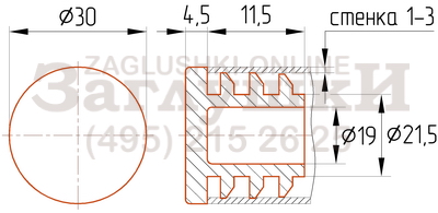 Внутренняя пластиковая заглушка для металлических и хромированных труб диаметром 30 мм. Имеет рёберную конструкцию заходящей части и подходит для труб со стенкой 1,5-2,5 мм. Отличается толстой шляпкой, благодаря чему может использоваться как опора в мебельных изделиях на металлокаркасе. Вставляется в торец трубы и забивается киянкой.