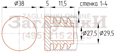Пластиковая внутренняя заглушка для круглых труб диаметром 38 мм. Имеет рёберную конструкцию заходящей части и подходит для труб со стенкой 1,5-2,5 мм. Заглушка отличается поверхностью шляпки типа «шагрень», за счёт чего эстетично и аккуратно смотрится в металлоконструкции. Для монтажа изделия используется киянка или другой подобный инструмент.