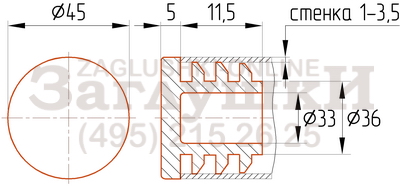 Пластиковая внутренняя заглушка для металлических и хромированных круглых труб диаметром 45 мм. За счёт рёберной конструкции заходящей части подходит для труб со стенкой 1-3,5 мм. Заглушка имеет толстую шляпку и может использоваться в качестве опоры. Для монтажа изделия достаточно вставить заглушку в торец трубы и аккуратно забить резиновым молотком.