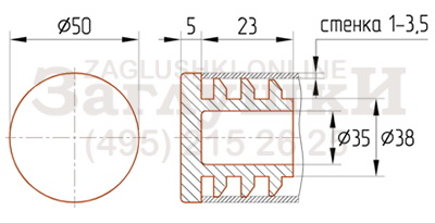 Пластиковая внутренняя заглушка для металлических и хромированных круглых труб диаметром 50 мм. Имеет рёберную конструкцию заходящей части и подходит для труб со стенкой 1-3,5 мм. Используется для того, чтобы закрыть торец трубы в декоративных, защитных и транспортировочных целях. Легко забивается в торец киянкой или другим подобным инструментом.