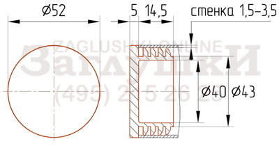 Внутренняя заглушка для металлических и хромированных труб диаметром 52 мм. Имеет рёберную конструкцию заходящей части и подходит для труб со стенкой 1,5-3,5 мм. Заглушка отлита из высокопрочного пластика, благодаря чему на её поверхности нет стыков и швов. Изделие аккуратно смотрится в торце трубы, придавая металлоконструкции завершённый и эстетичный вид.