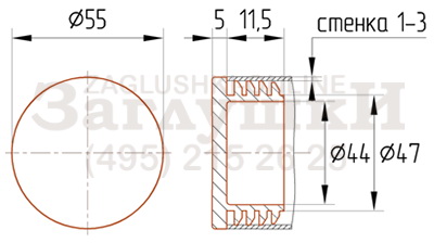 Пластиковая заглушка для металлических и хромированных труб с внешним диаметром сечения 55 мм. Подходит для труб с толщиной стенки 1-3 мм. Монтируется с помощью киянки или другого подобного инструмента. Имеет четыре ряда боковых рёбер и отлично держится, защищая от попадания внутрь трубы пыли и влаги.