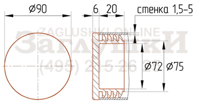 Пластиковая внутренняя заглушка диаметром 90 мм. Имеет рёберную конструкцию заходящей части и подходит для труб со стенкой 1,5-5 мм. Используется для того, чтобы закрыть торец трубы в декоративных, защитных и транспортировочных целях. Монтируется с помощью киянки. Надёжно держится, защищая от механических повреждений и попадания внутрь трубы влаги и пыли.