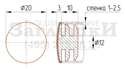 Пластиковая внутренняя заглушка для хромированных труб диаметром 20 мм. Шляпка изделия обжата хромированным металлом. Имеет рёберную конструкцию заходящей части и подходит для труб со стенкой 1-2,5 мм. Вставляется в торец трубы и забивается киянкой. Отлично держится, придавай конструкции аккуратный и завершённый вид. В основном используется в стульях на хромированном металлокаркасе.