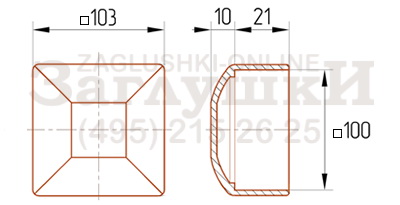 Наружная заглушка для металлических и хромированных труб квадратного сечения 100х100 мм. Используется в декоративных и защитных целях, а также при перевозке и хранении труб. Монтируется с помощью киянки или другого подобного инструмента. Защищает торец трубы от механических повреждений.