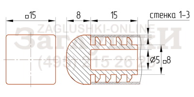 Пластиковая внутренняя заглушка с полусферической шляпкой. Предназначена для труб квадратного сечения 15х15 мм. Отличается рёберной конструкцией заходящей части и подходит для труб с толщиной стенки 1-3 мм. В основном используется для того, чтобы закрыть торец трубы в декоративных целях. Монтируется с помощью киянки. Аккуратно и эстетично смотрится в металлоконструкции.