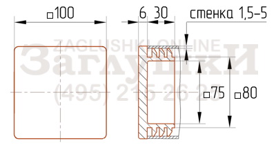 Пластиковая внутренняя заглушка для металлических и хромированных труб квадратного сечения 100х100 мм. Имеет рёберную конструкцию заходящей части и подходит для труб со стенкой 1,5-5 мм. Используется в защитных, декоративных и транспортировочных целях. Монтируется с помощью киянки или другого подобного инструмента. Надёжно держится, защищая от попадания внутрь трубы пыли и влаги.