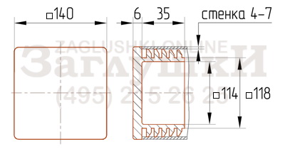 Пластиковая внутренняя заглушка для труб квадратного сечения 140х140 мм. Имеет рёберную конструкцию заходящей части и подходит для труб со стенкой 4-7 мм. Используется в декоративных, защитных и транспортировочных целях. Закрывает торец трубы, предотвращая попадание внутрь пыли и влаги. Аккуратно и эстетично смотрится в металлоконструкции.
