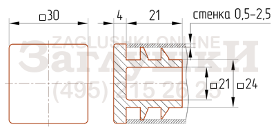 Пластиковая внутренняя заглушка для металлических и хромированных труб квадратного сечения 30х30 мм.