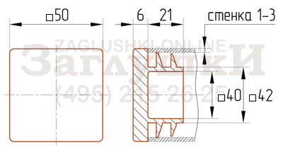 Пластиковая внутренняя заглушка для металлических и хромированных труб квадратного сечения 50х50 мм. Вставляется в торец трубы и забивается киянкой или другим подобным инструментом. Отлично фиксируется благодаря рёбрам на заходящей части. Аккуратно смотрится, придавая конструкции завершённый и эстетичный вид.