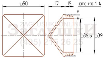 Внутренняя заглушка для металлических труб квадратного сечения 50х50 мм. Имеет рёберную конструкцию заходящей части и подходит для труб со стенкой 1-4 мм. В основном используется для заборов и ограждений. Заглушка надёжно фиксируется, защищая от попадания внутрь трубы пыли и влаги. Аккуратно и эстетично смотрится в металлоконструкции.