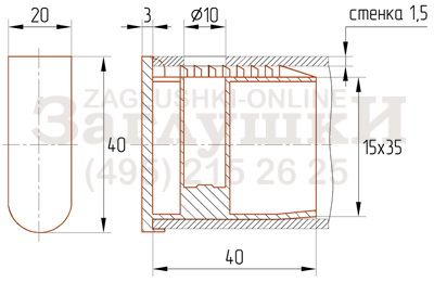 Пластиковая внутренняя заглушка для металлических и хромированных труб полуовального сечения 20х40 мм. Подходит для труб со стенкой 1,5 мм. Имеет отверстие под колесную опору. Используется для спортивного, торгового оборудования, стоек и мебели на металлокаркасе. Заглушка монтируется с помощью киянки и надёжно фиксируется благодаря боковым рёбрам. Аккуратно и эстетично смотрится в металлоконструкции.