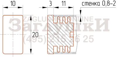 Пластиковая внутренняя заглушка для металлических и хромированных труб прямоугольного сечения 10х20 мм. Подходит для труб с толщиной стенки 1-1,5 мм. Монтируется с помощью киянки или путём сильного нажатия на заглушку ладонью. Отлично фиксируется в трубе, защищая от попадания внутрь пыли и влаги. Аккуратно смотрится, придавая металлоконструкции завершённый вид.