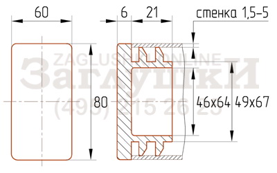 Пластиковая внутренняя заглушка для металлических и хромированных труб прямоугольного сечения 60х80 мм. Вставляется в торец трубы и забивается киянкой или другим похожим инструментом. Надёжно держится, не слетает. Отлично защищает от попадания внутрь трубы пыли и влаги, тем самым увеличивая срок эксплуатации металлической конструкции.