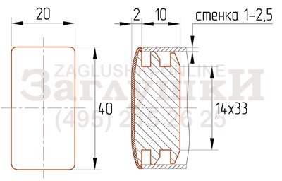 Внутренняя заглушка для профильных труб 20х40 мм. Шляпка изделия обжата хромированным металлом. Имеет рёберную конструкцию заходящей части и подходит для труб со стенкой 1-2,5 мм. Монтируется с помощью киянки. Надёжно фиксируется в торце трубы, защищая от попадания внутрь пыли и влаги. Заглушка популярна для мебели на хромированном металлокаркасе: за счёт идентичности цвета с трубой изделие практически незаметно располагается в металлоконструкции.
