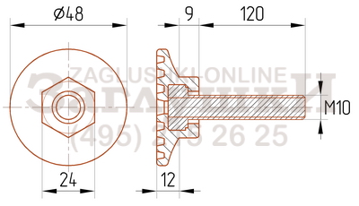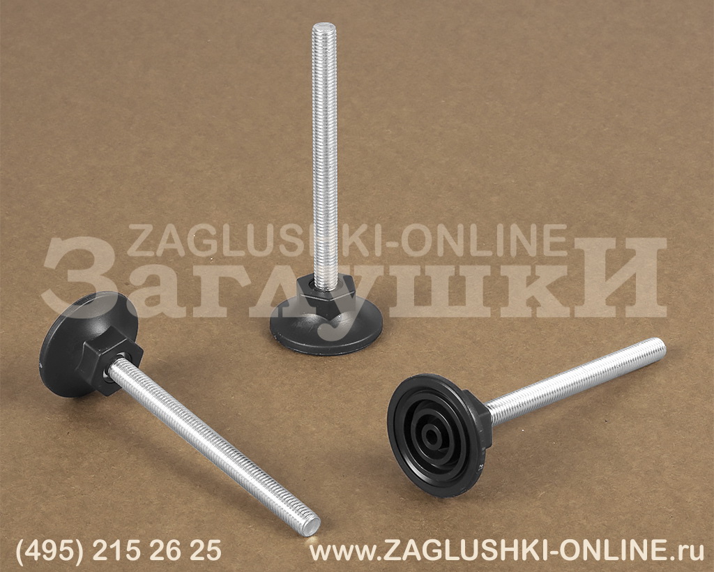 Пластиковая опора с резьбовым стержнем М10х120 мм. Диаметр основания опоры — 48 мм. Используется для регулировки конструкции по высоте. Основание опоры имеет коническую форму, а шестигранная верхняя часть основания позволяет производить регулировку высоты гаечным ключом. Дополнительно рекомендуем к резьбовой опоре приобретать заглушку с резьбой М10. Размер заглушки подбирается исходя из диаметра или профиля используемой трубы.
