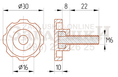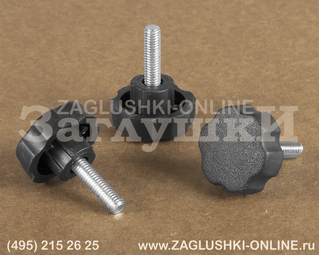Ручка-винт с резьбовым стержнем М6х20 мм. Диаметр рукоятки составляет 30 мм. В основном используется в торговом и офисном оборудовании, а также в фототехнике. С помощью изделия можно регулировать высоту и угол наклона изделия (например, в фотоштативе). Имеет удобную форму рукоятки и вкручивается вручную. Надёжно фиксирует изделие и аккуратно смотрится.