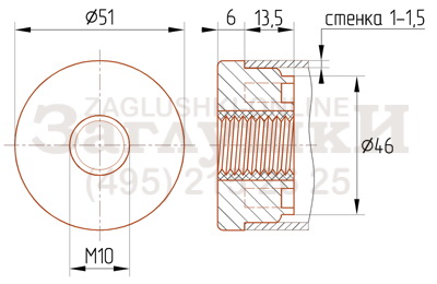 Пластиковая заглушка для круглых труб диаметром 51 мм. Имеет влитую металлическую резьбу М10. Отличается рёберной конструкцией заходящей части и подходит для труб со стенкой 1-1,5 мм. В комплекте с резьбовой опорой используется для регулировки высоты металлических конструкций. Заглушка вставляется в торец трубы и забивается киянкой, затем в неё вкручивается опора, за счёт которой осуществляется регулировка.